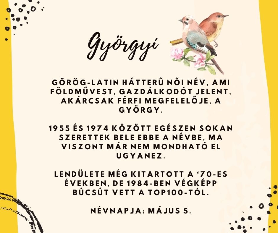 A heti névnaposok között emellett több olyan név is akad, ami mára kikopott a Top100-ból, de találhatsz olyat is, amelyik egyszer sem szerepelt még a legfelkapottabb nevek listájában.