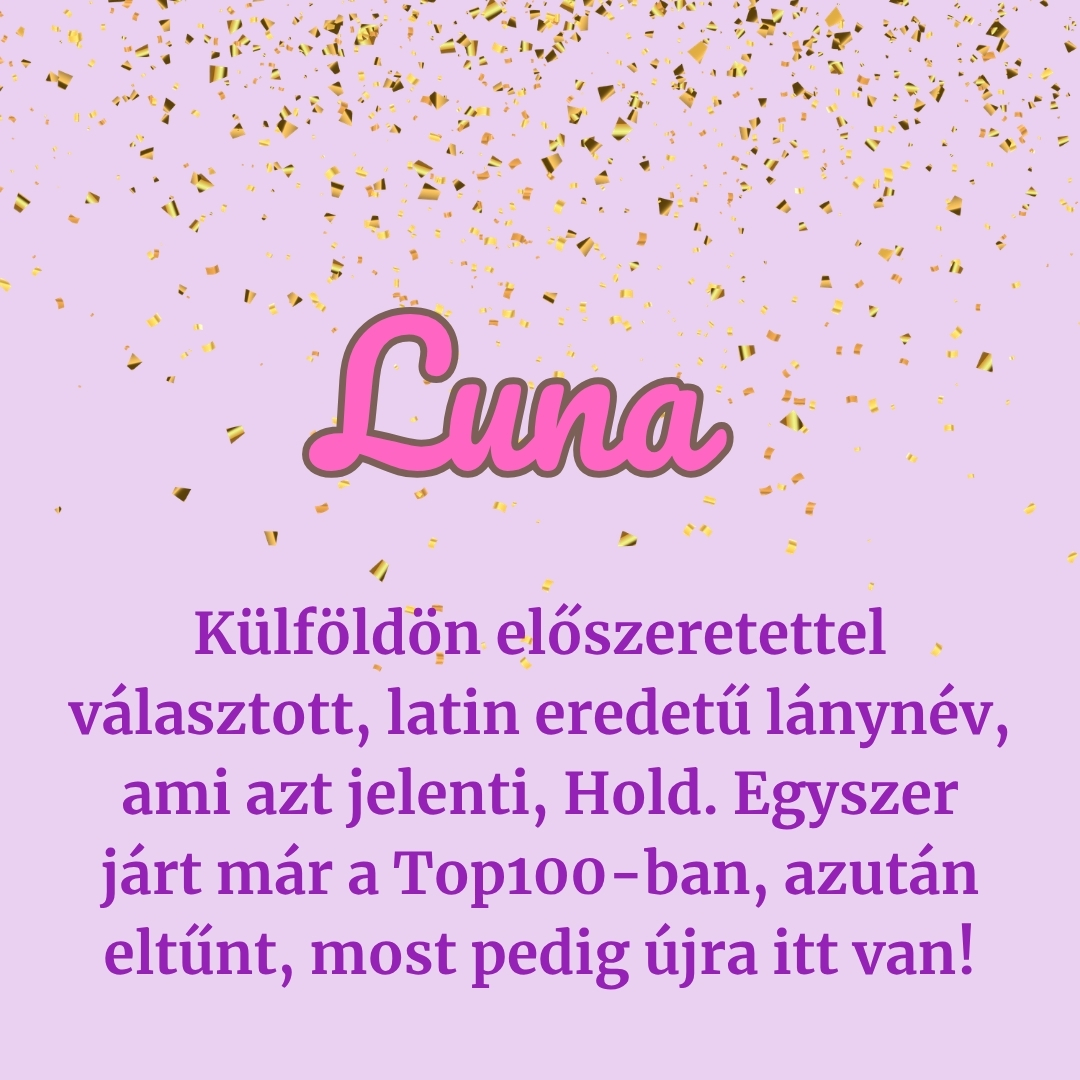 Az élvonalban tündöklő nevek közé továbbra is a Hanna, a Luca, a Zoé, az Emma, az Anna, az Olívia és a Léna tartozik, hátrébb csúszott viszont a Laura és az Alíz – az ő helyüket a Kamilla és a Lili vette át.