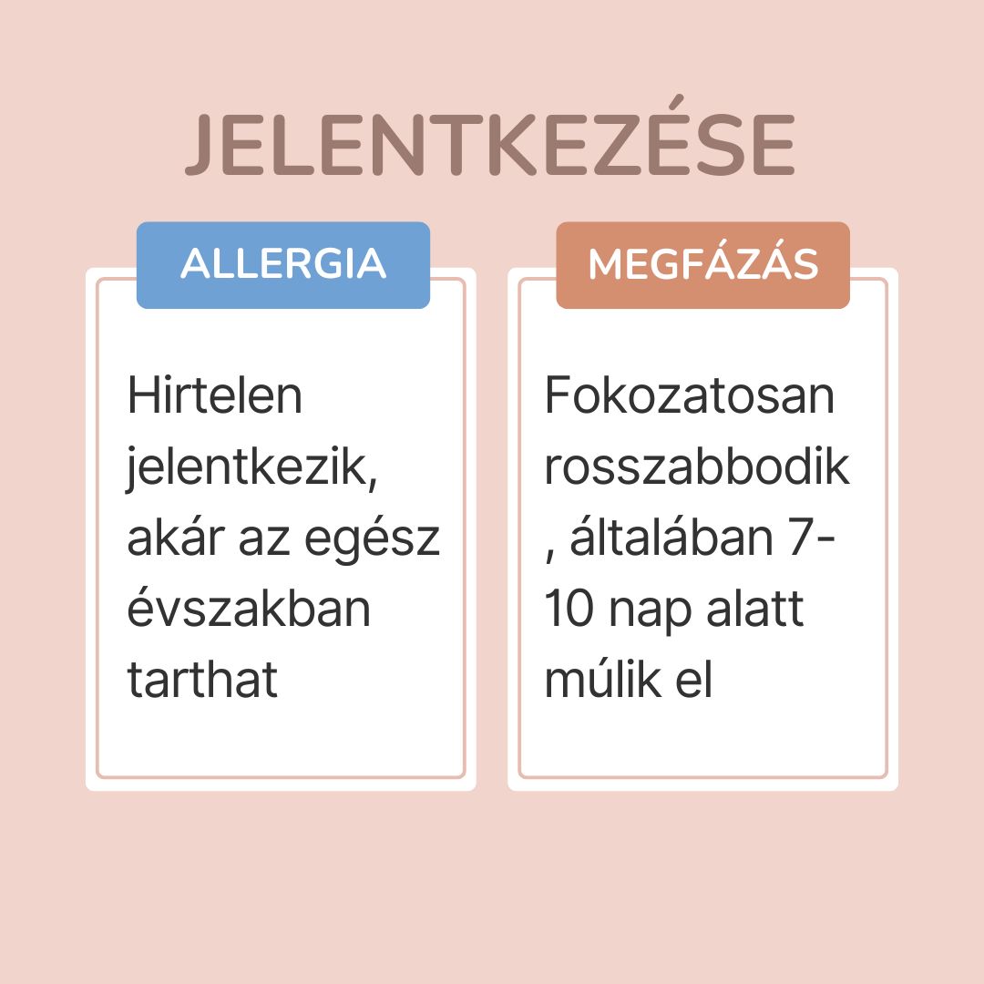 A megfázás (nátha) és az allergia (szénanátha) egyaránt a felső légúti területet érinti, és a tüneteik nagyon hasonlóak. Mind a megfázást okozó vírusok, mind az allergiát okozó pollenek az orr és a felső légutak nyálkahártyáját ingerlik, irritálják. És a szervezet ugyanúgy gyulladással reagál és védekezik. Ez az oka a legtöbb közös tünetnek. A hasonlóságok mellett azonban vannak árulkodó különbségek is – jó, ha ezekkel tisztában vagyunk. Már csak azért is, mert a megfázásra használható szerek nem enyhítik az allergiás tüneteket. És fordítva: az allergiás tüneteket csökkentő gyógyszerek a megfázáshoz kötődő panaszokra nincsenek jótékony hatással.