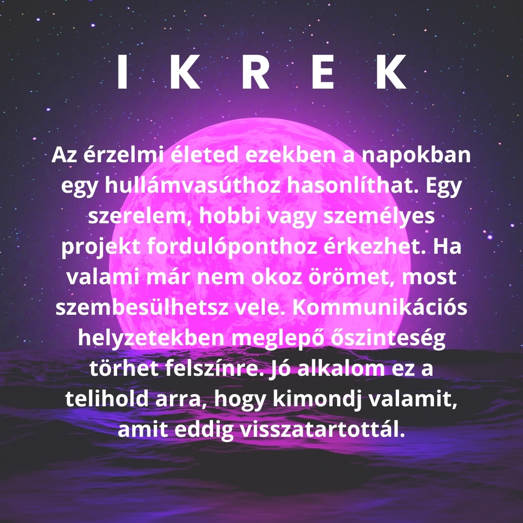 Ikrek, Mérleg és Vízöntő: Kapcsolatok, kommunikáció és új ötletek jellemzik a hónapot. Könnyen teremtesz kapcsolatokat, és egy váratlan beszélgetés akár új irányt is adhat az életednek. Az Ikrek és a Vízöntő különösen szerencsések lehetnek – érdemes élni a kínálkozó lehetőségekkel.