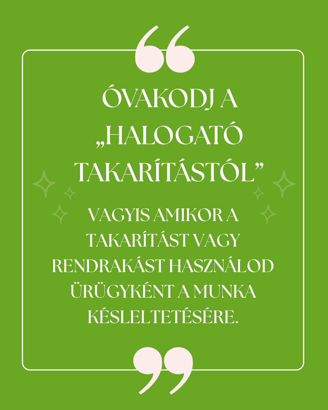 De igazából ez bármire igaz, amit halogatás ürügyén végzel. Ismerd fel ezeket az elterelő tevékenységeket, és lásd be, hogy így nem segítik a boldogulásodat.