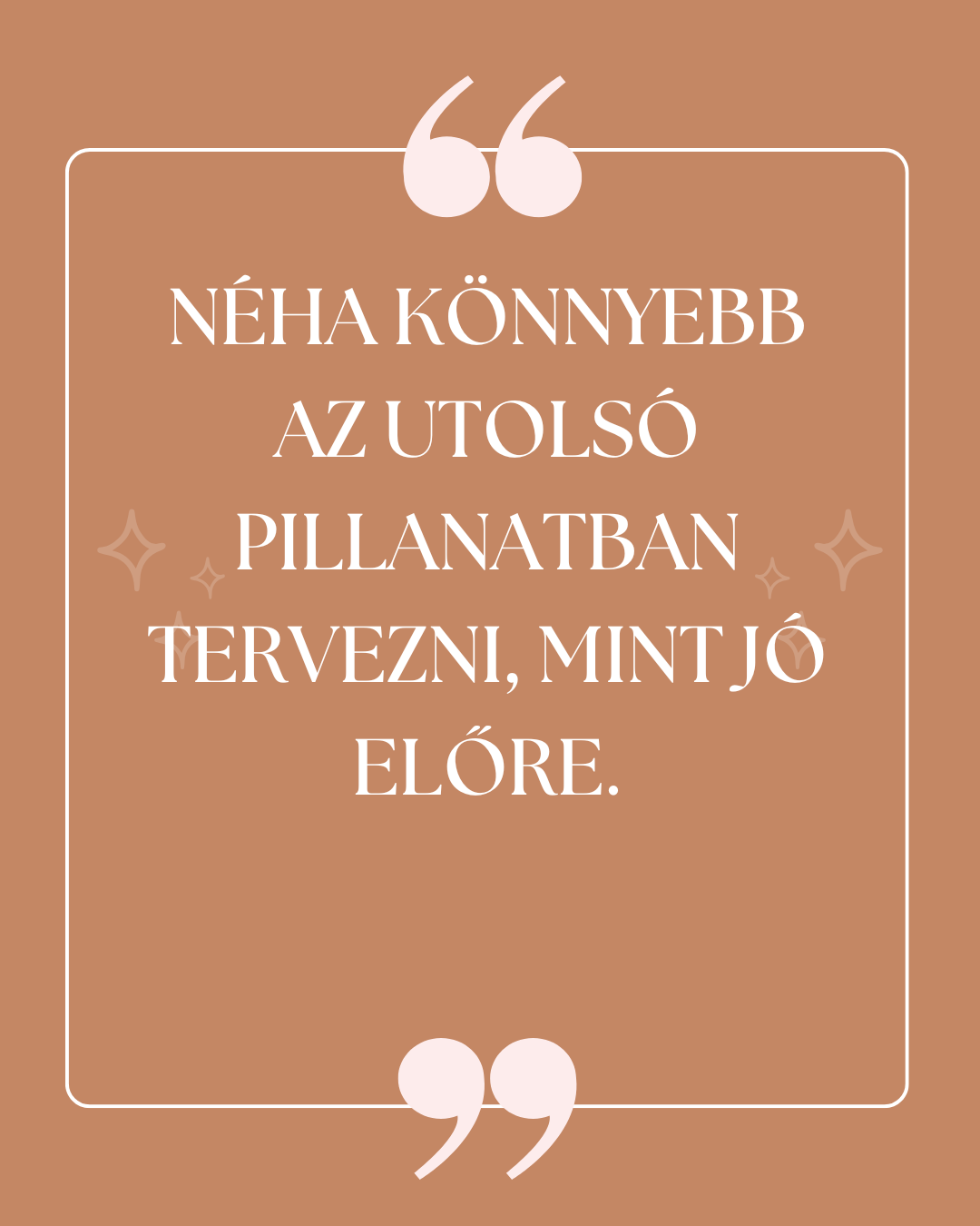 Ha időben gondolkodsz, akkor nem kell a „kifogytam-érzéssel” szembesülnöd, és nem kell kapkodva megoldást keresned – ami nagyon sokat tesz hozzá a közérzetedhez.