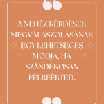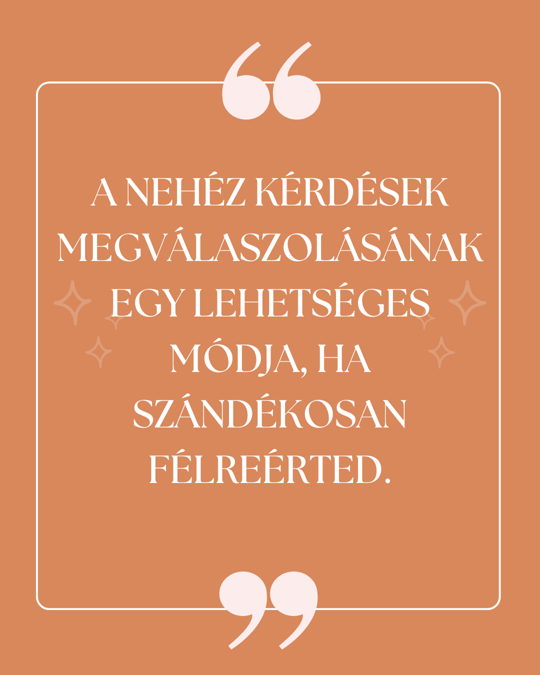 A stratégiai félreértés „technikája” sokszor kimozdíthat a nehéz helyzetekből. Válaszolj úgy a kérdésre, ahogy szeretnél, aztán majd alakul.