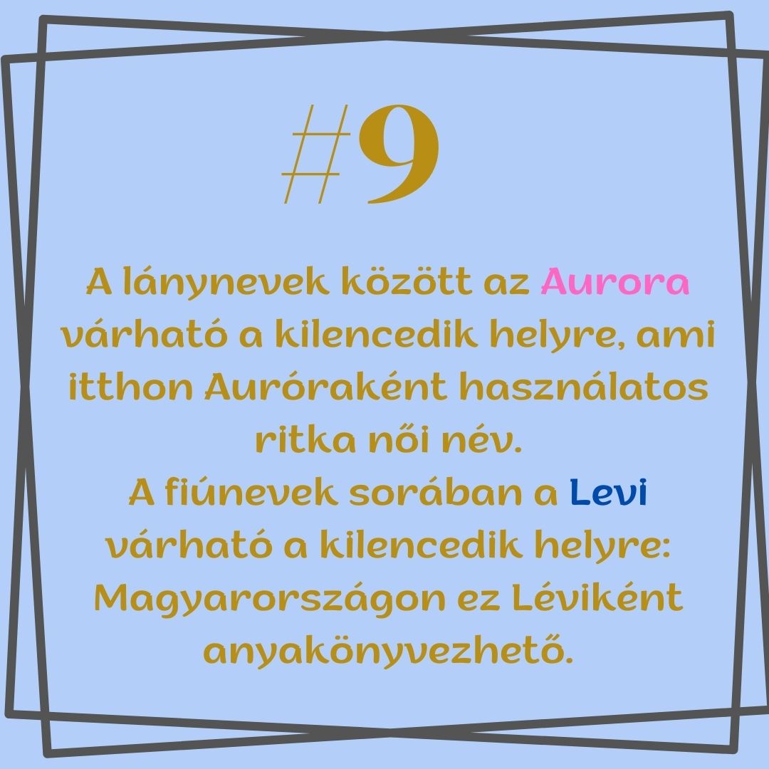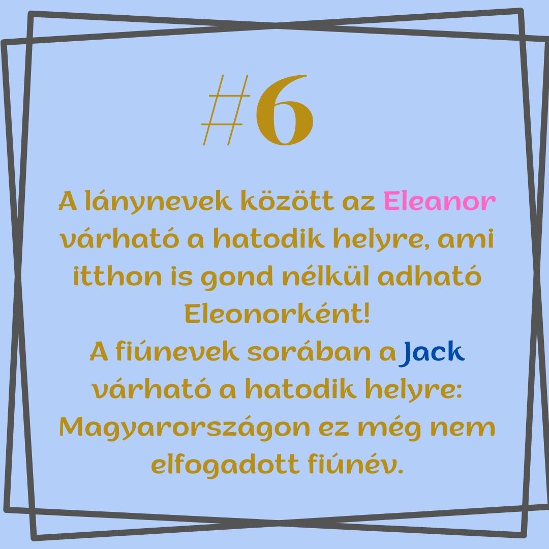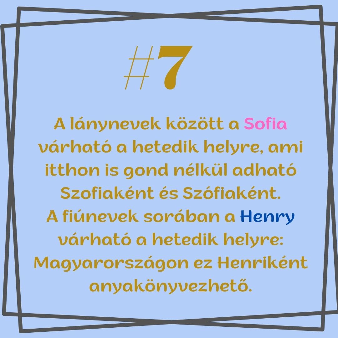 Mint mondta, a névválasztás háza táján 10 év hosszú idő: az, ami most még az élmezőny közelébe sem jutott, könnyen lehet, hogy egy évtized leforgása alatt aranyérmessé növi ki magát. Az ő meglátása szerint óriási változás várható a névadási trendekben, ami bizony Magyarországot is eléri majd.