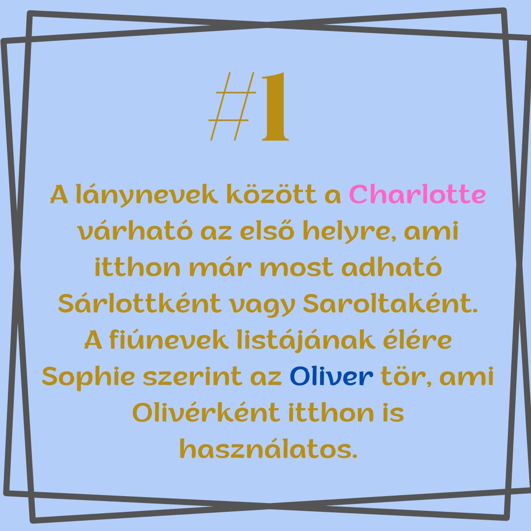 A toplistásnak ígérkező nevek közül több már most gond nélkül anyakönyvezhető itthon, és némelyik valóban egyre feljebb tör a Top100-ban, vagyis Sophie előrejelzése egészen megalapozottnak tűnik!