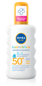 Gyorsan felszívódik, és nem hagy nyomot maga után a Nivea Sun Kids Sensitive Protect naptej-spray SPF 50+. Fokozott védelmet nyújt UVA/UVB sugárzás ellen. Kíméli a babák érzékeny bőrét, illatanyagmentes és hipoallergén.
