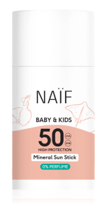 A Naif Baby & Kids Mineral Sun Stick vízálló textúrája testre és arcra is használható, kíméli a babák érzékeny bőrét. Könnyen kenhető, nem hagy fénylő, zsíros réteget a bőrön. Parfümmentes, vegán termék.