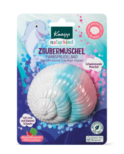 A szivárványos Kneipp kagyló lebeg a víz felszínén, majd ahogy feloldódik, lilára festi a vizet, és dinnyeillatot varázsol. Avokádó- és szőlőmagolajat tartalmaz.