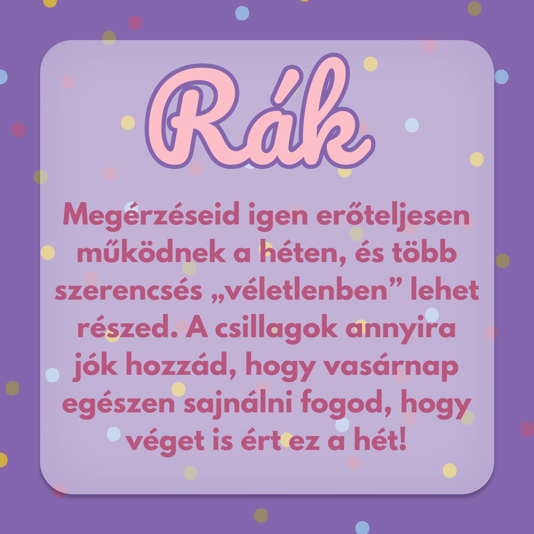 Ha már itt jársz, nem hagyunk heti előrejelzés nélkül akkor sem, ha netán nem vagy azok között a csillagjegyek között, akik igazán ígéretes hétnek néznek elébe az égiek szerint.