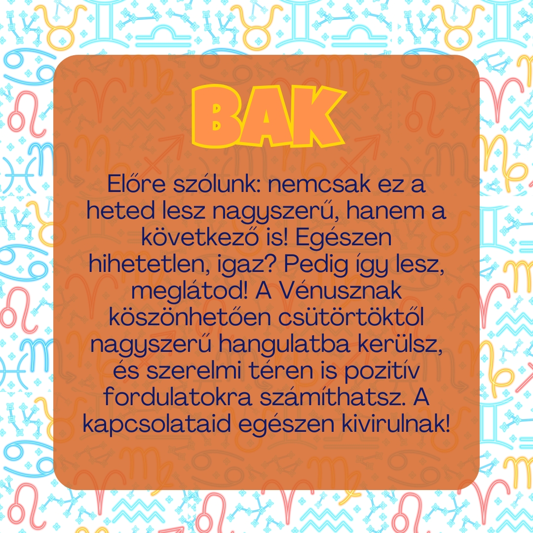 Ha már itt jársz, nem hagyunk heti előrejelzés nélkül akkor sem, ha netán nem vagy azok között a csillagjegyek között, akik igazán ígéretes hétnek néznek elébe az égiek szerint.