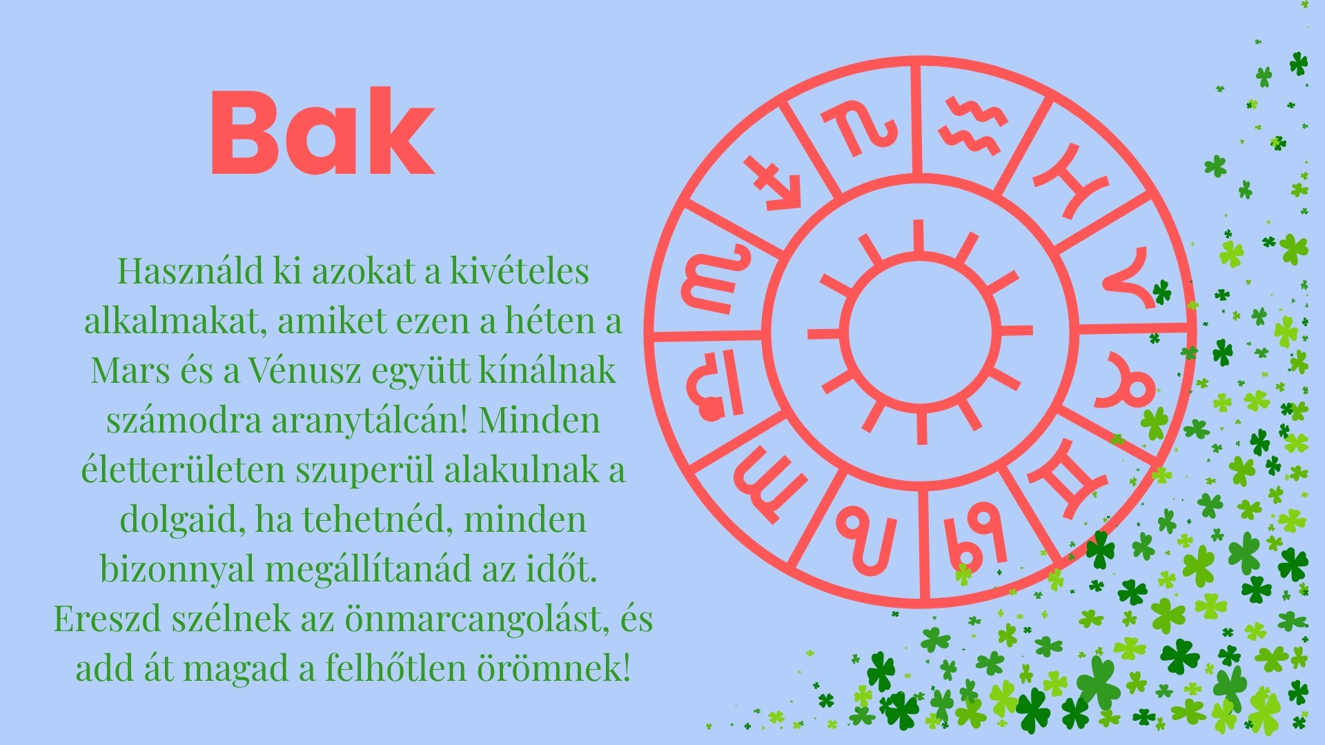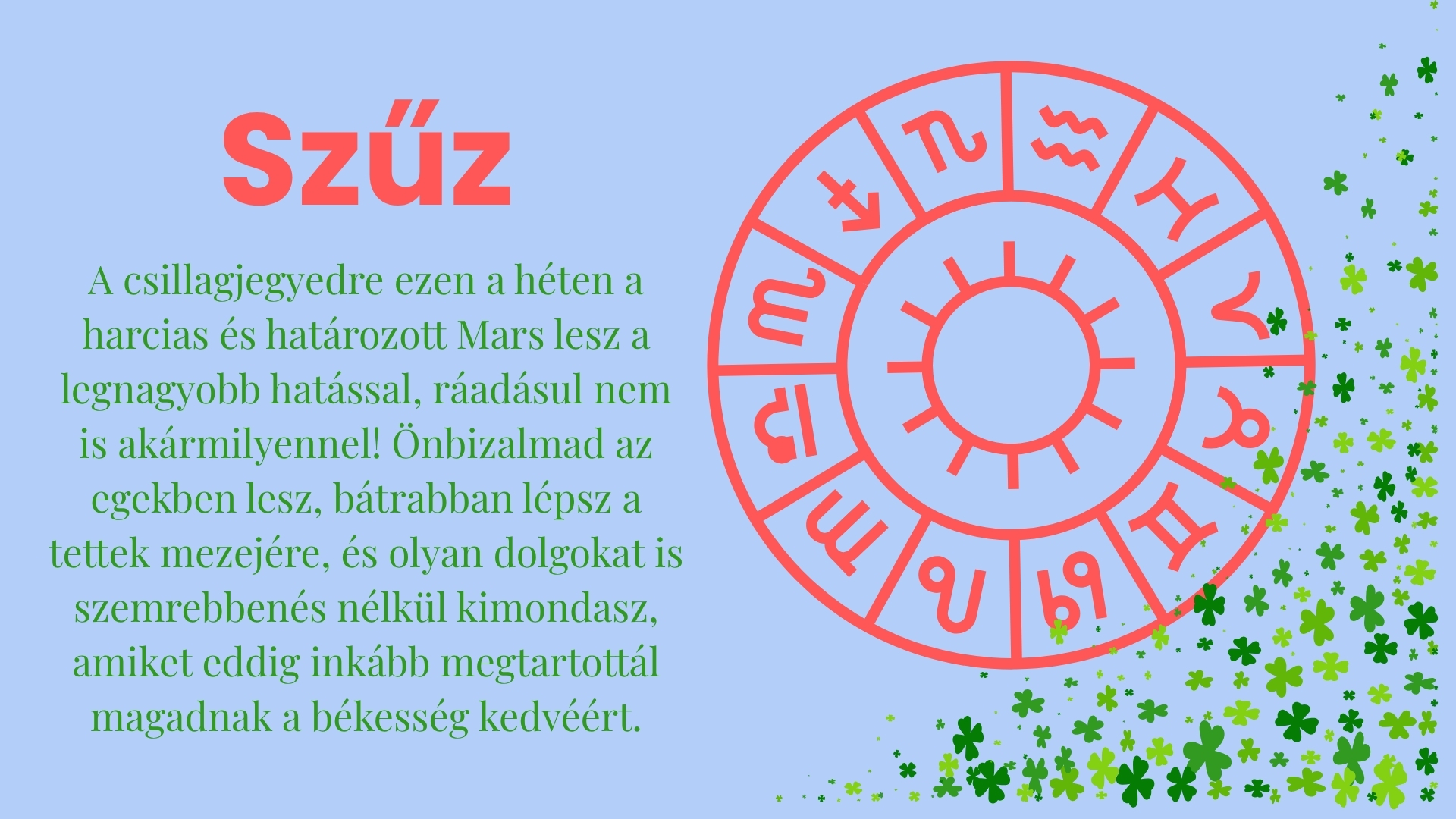 Ha már itt jársz, nem hagyunk heti előrejelzés nélkül akkor sem, ha netán nem vagy azok között a csillagjegyek között, akik igazán ígéretes hétnek néznek elébe az égiek szerint.
