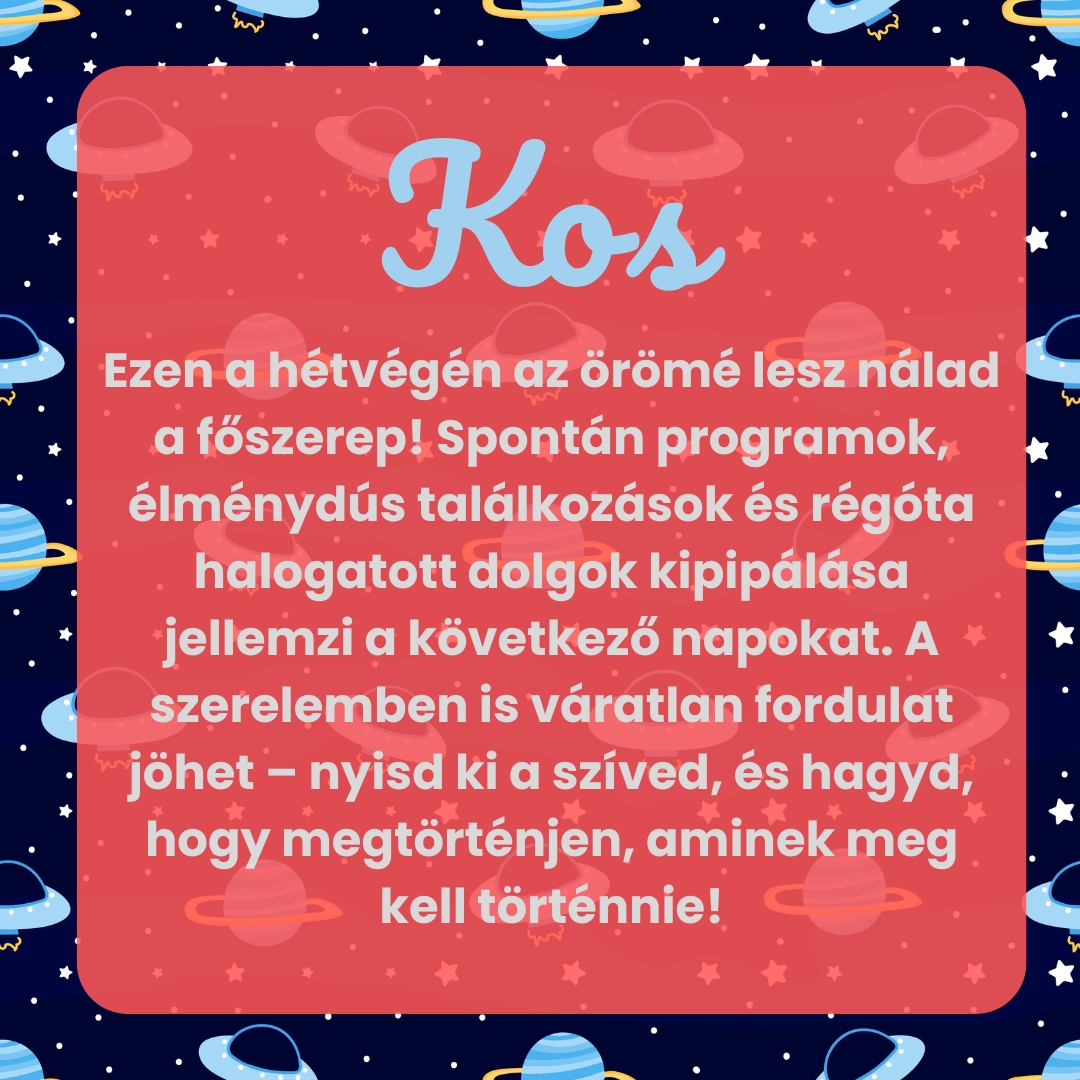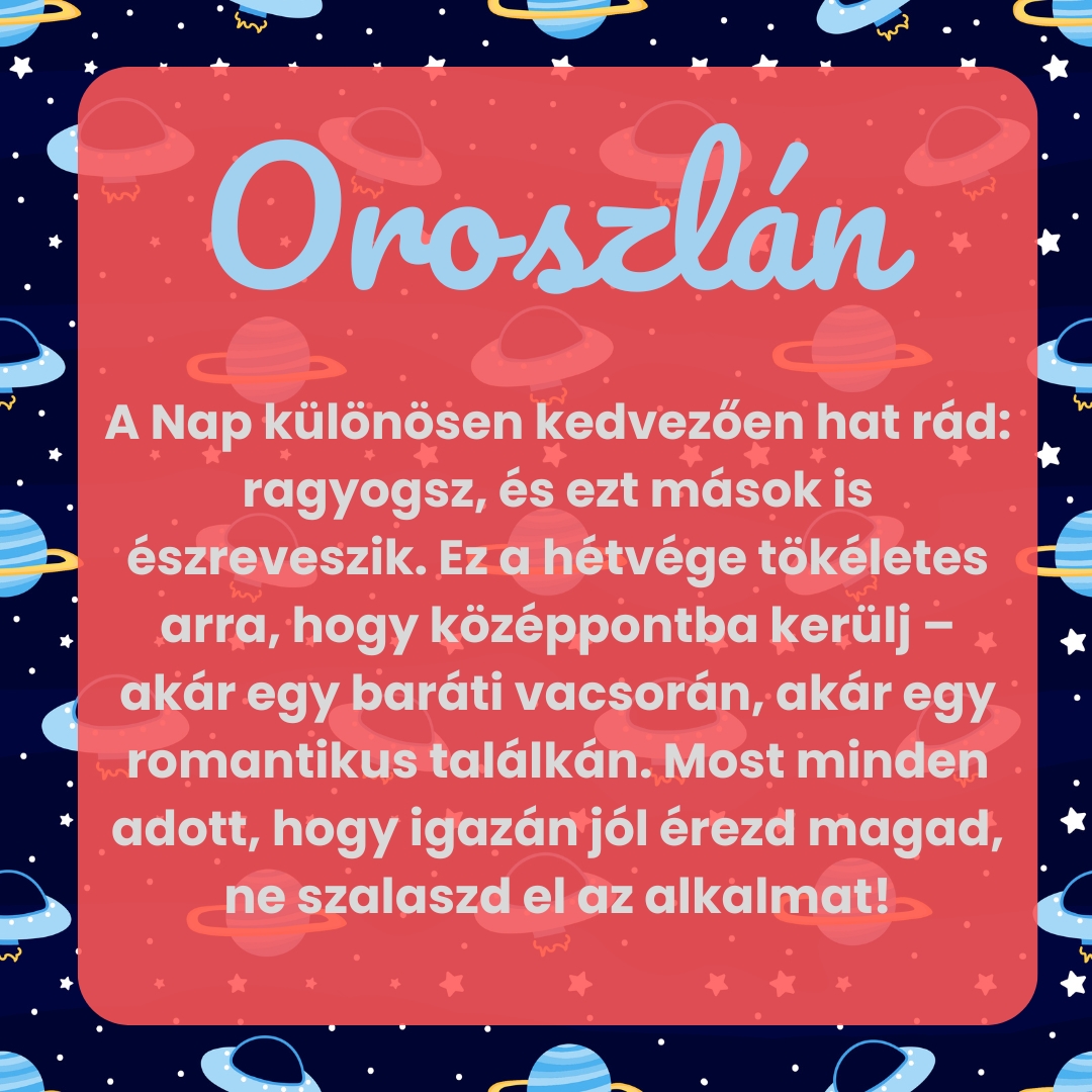 Mindegy, melyik jegyben születtél, ha megfogadod ezt a tanácsot, a lehető legtöbbet hozhatod ki a hétvégéből: hallgass a megérzéseidre, és ne erőltess semmit – a legjobb dolgok most spontán történnek. Engedd, hogy a csillagok vezessenek!