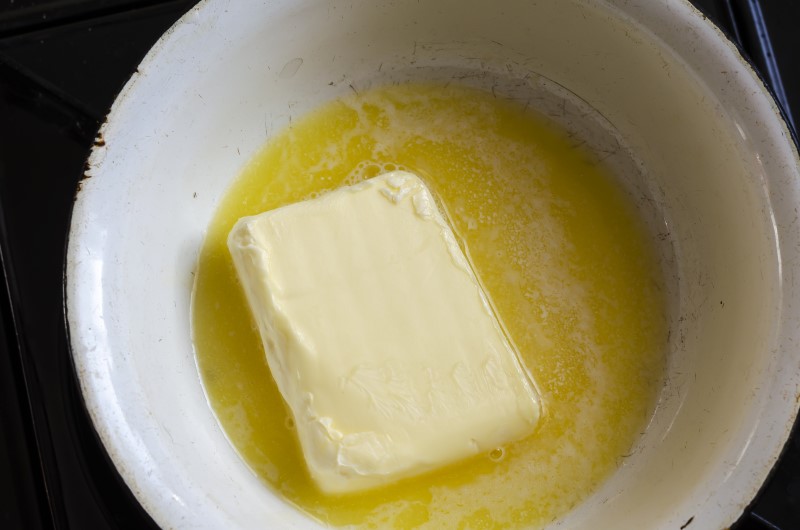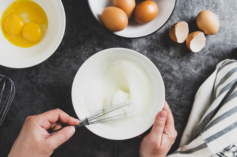 2. Egy másik tálba öntsük bele a tejet, adjuk hozzá a tojások sárgáját és az olvasztott vajat, majd keverjük simára.