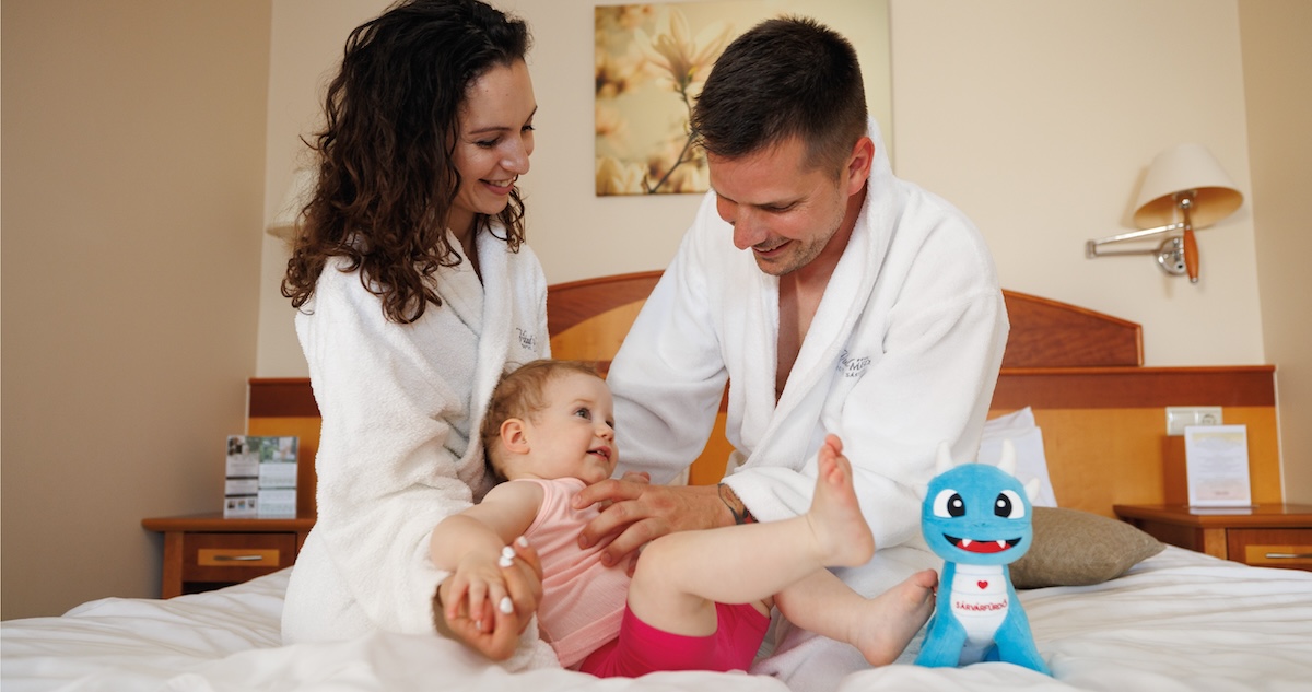 És ez még nem minden! A fürdő beltéri és kültéri csúszdaparkja is vár: kisebbeknek gyerekcsúszdák, nagyobbaknak óriáscsúszdák, hogy minden korosztály megtalálja a maga kedvencét.A szakképzett animátorok egész nap vidám programokkal szórakoztatják a gyerekeket, míg a legkisebbeket a baba-mama pihenő szolgálja ki: babakonyhával, pelenkázóval és játszósarokkal.