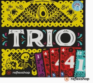 Szintén gyorsan lejátszható, egy kicsit a Solohoz/Unohoz hasonló kártyajáték a TRIO, amit 7 éves kortól ajánlanak. Itt a kezetekben és az asztalon lévő kártyákból kell minél gyorsabban triókat alkotnotok, összegyűjtenetek számokból vagy színekből. A játékban fontos, hogy jól kérdezzünk a többiektől és megjegyezzük, hogy milyen lapok vannak náluk, amikor felfedeznek valamit – így ez a kártyajáték alaposan megdolgoztatja a rövid távú memóriát. Mivel kisebb méretű játék, amihez a kártyákon kívül nincs is szükség másra, így akár utazásra is magatokkal tudjátok vinni, és bárhol játszhattok vele.