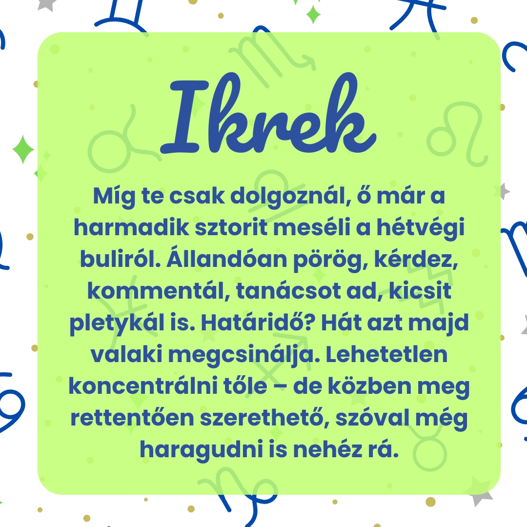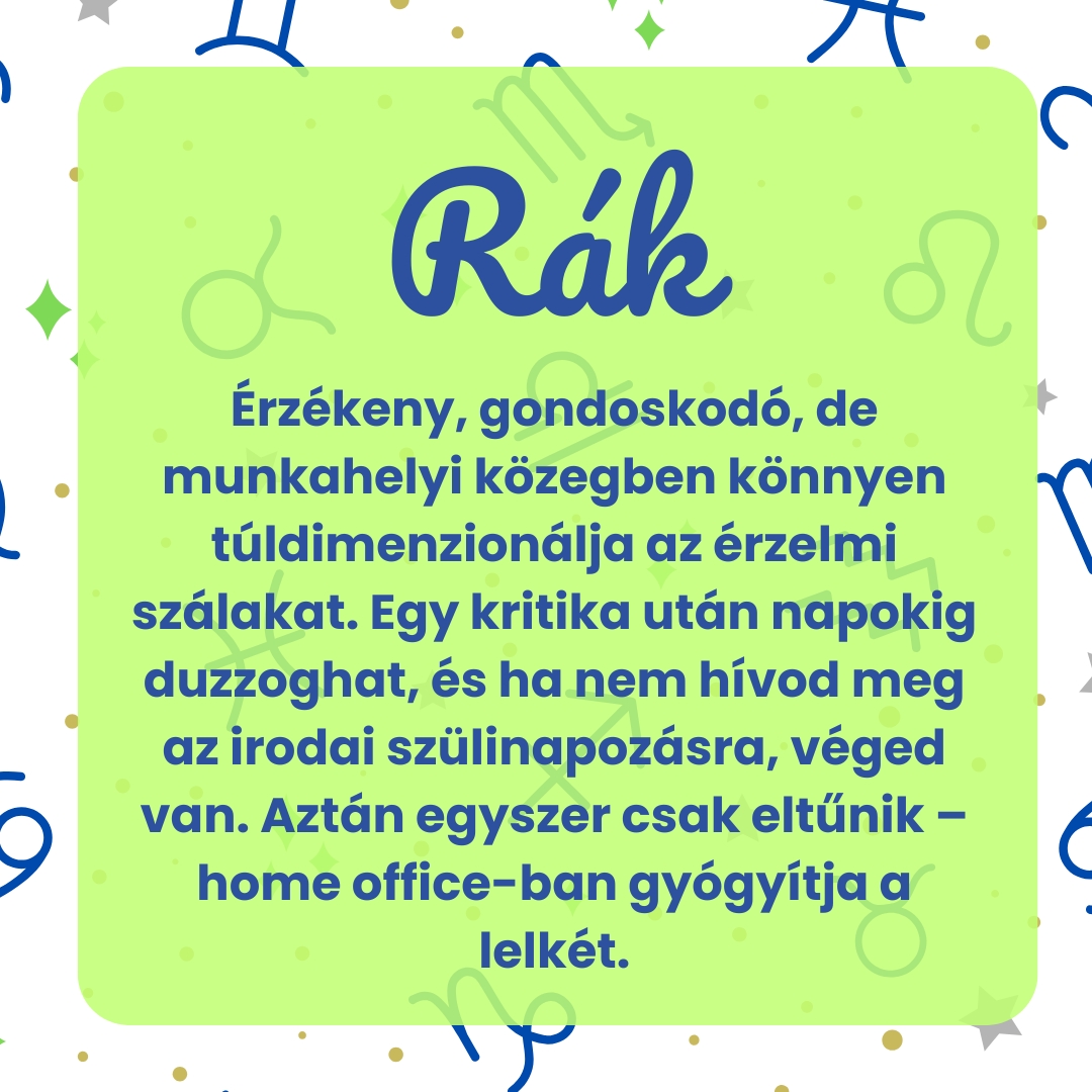 Minden munkahelyen, így nagy eséllyel a tieden is van legalább egy olyen kolléga, akitől idő előtt megemelkedik a vérnyomásod. Bár igaz, hogy nem lehet mindenért a horoszkópot hibáztatni, a tapasztalatok azt mutatják, hogy mégis vannak olyan csillagjegyek, akik – finoman szólva – kihívást jelentenek a közösség számára.