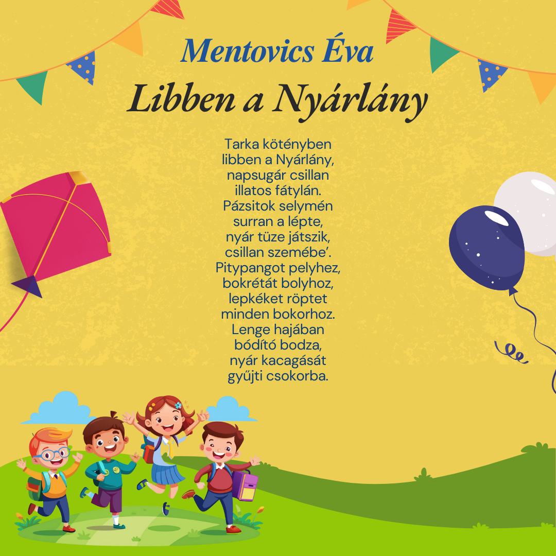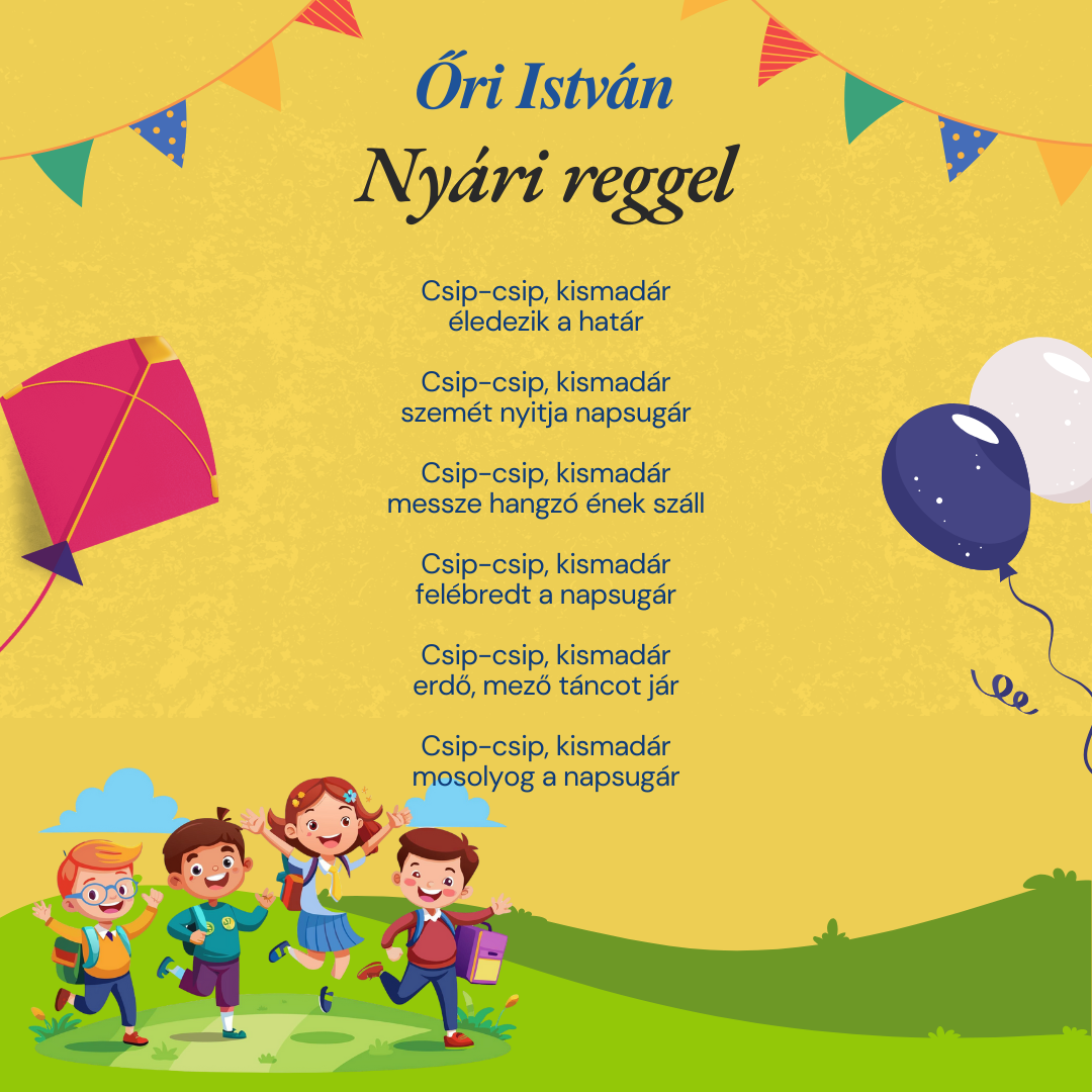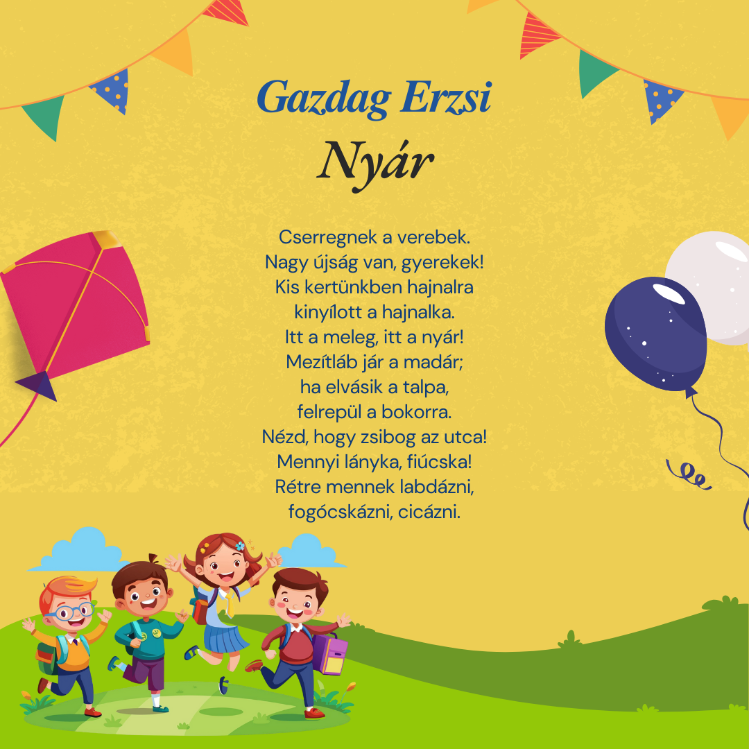 A nevezetes napokra és ünnepekre gyakran készülünk szülőként is versekkel és mondókákkal, de miért csak húsvétra vagy anyák napjára olvashatnánk a gyerekeinkkel. Számukra egyébként is a nyár és a vakáció az egyik legjobban várt időszak az évben és a kicsik általában nagyon szeretik a dallamos, fülbemászó sorokat hallgatni és szavalni egyaránt.