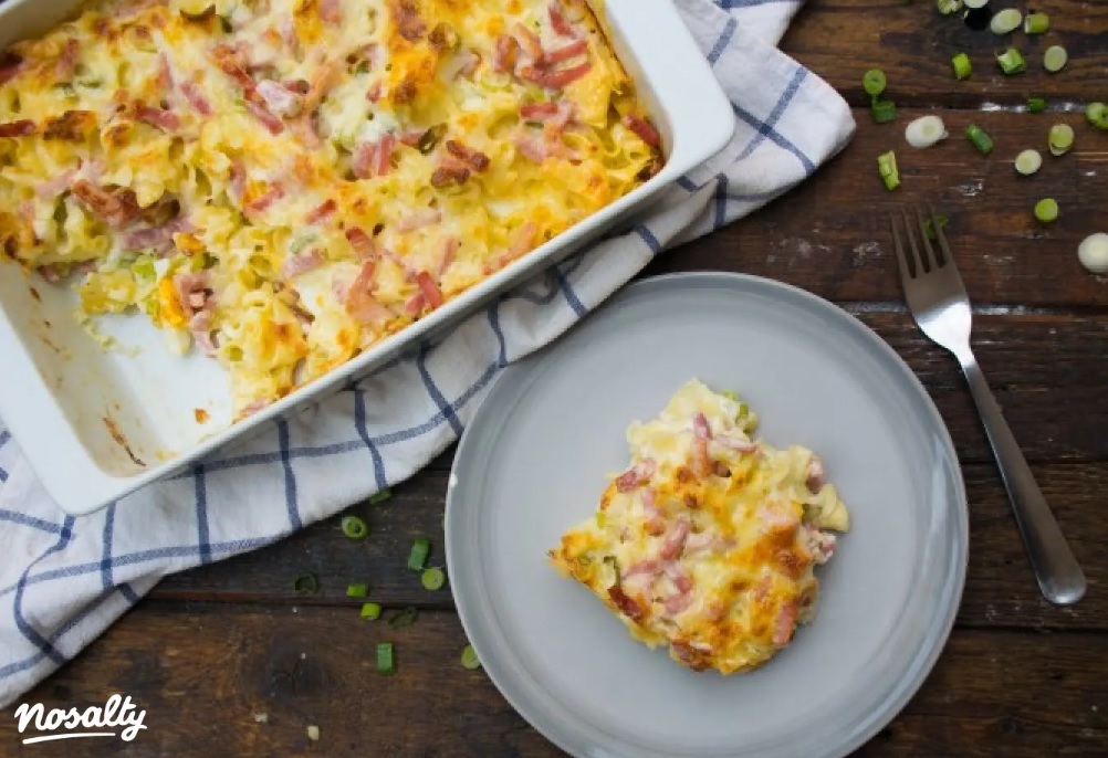 Tovább a receptre: Sonkás-hagymás-tojásos rakott tészta