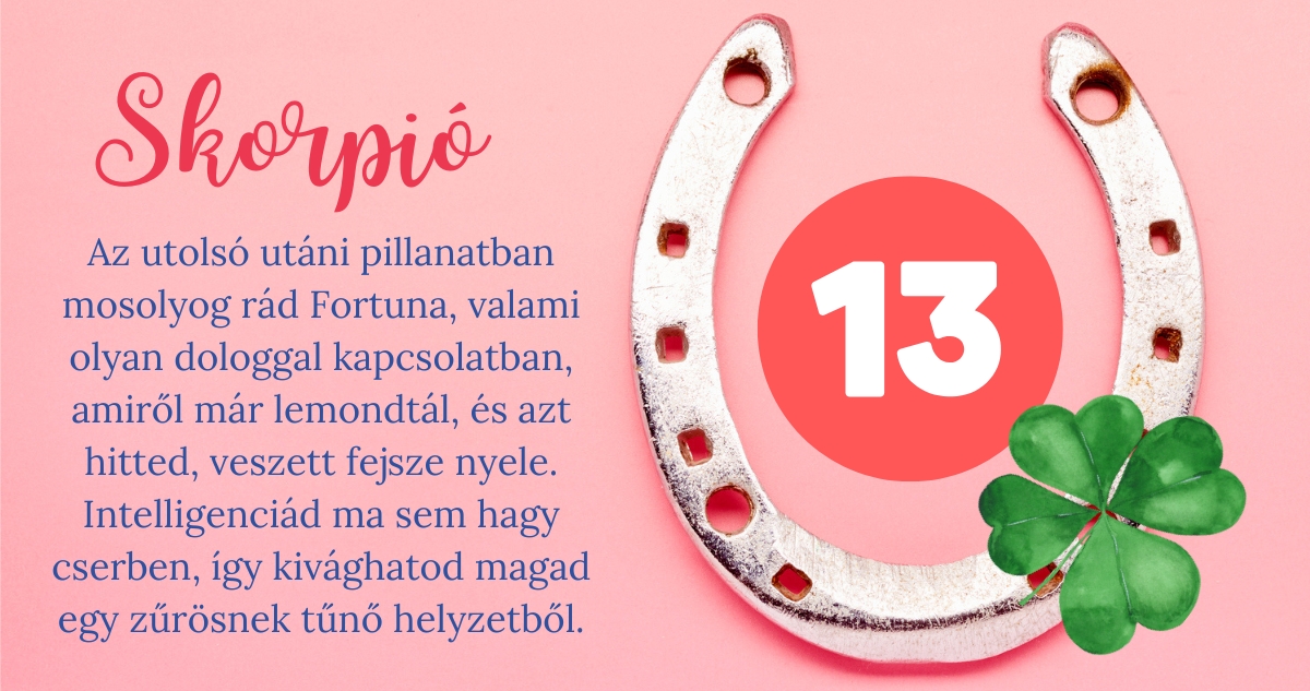 Szerencsére nem kell mindenkinek attól tartani, hogy tele lesz a napja kellemetlen fordulatokkal és kiszámíthatatlan összecsapásokkal, néhány állatövi jegy ugyanis kifejezetten jó formában lesz és eredményes napot zárhat, péntek 13-a ide vagy oda!