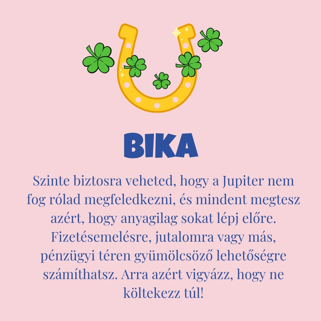 Ez nem feltétlenül azt jelenti, hogy a semmiből hullik majd az ölükbe a pénz, sokkal inkább olyan lehetőségek felbukkanására utalnak, amelyeket megragadva jelentős gyarapodásra számíthatnak.