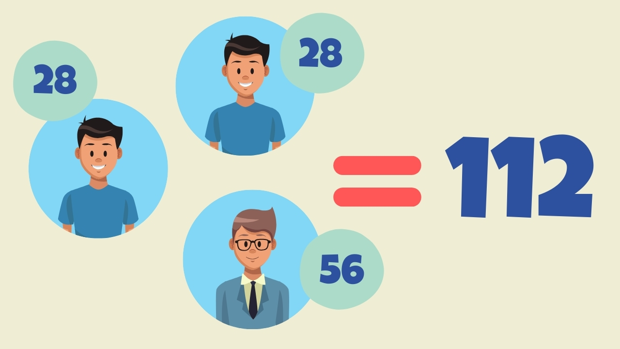Ellenőrzésképp érdemes összeadni a kapott életkorokat (28 + 28 + 56), s ha 112 jön ki, egy pillanatig sem kell kételkedned abban, hogy remek munkát végeztél!