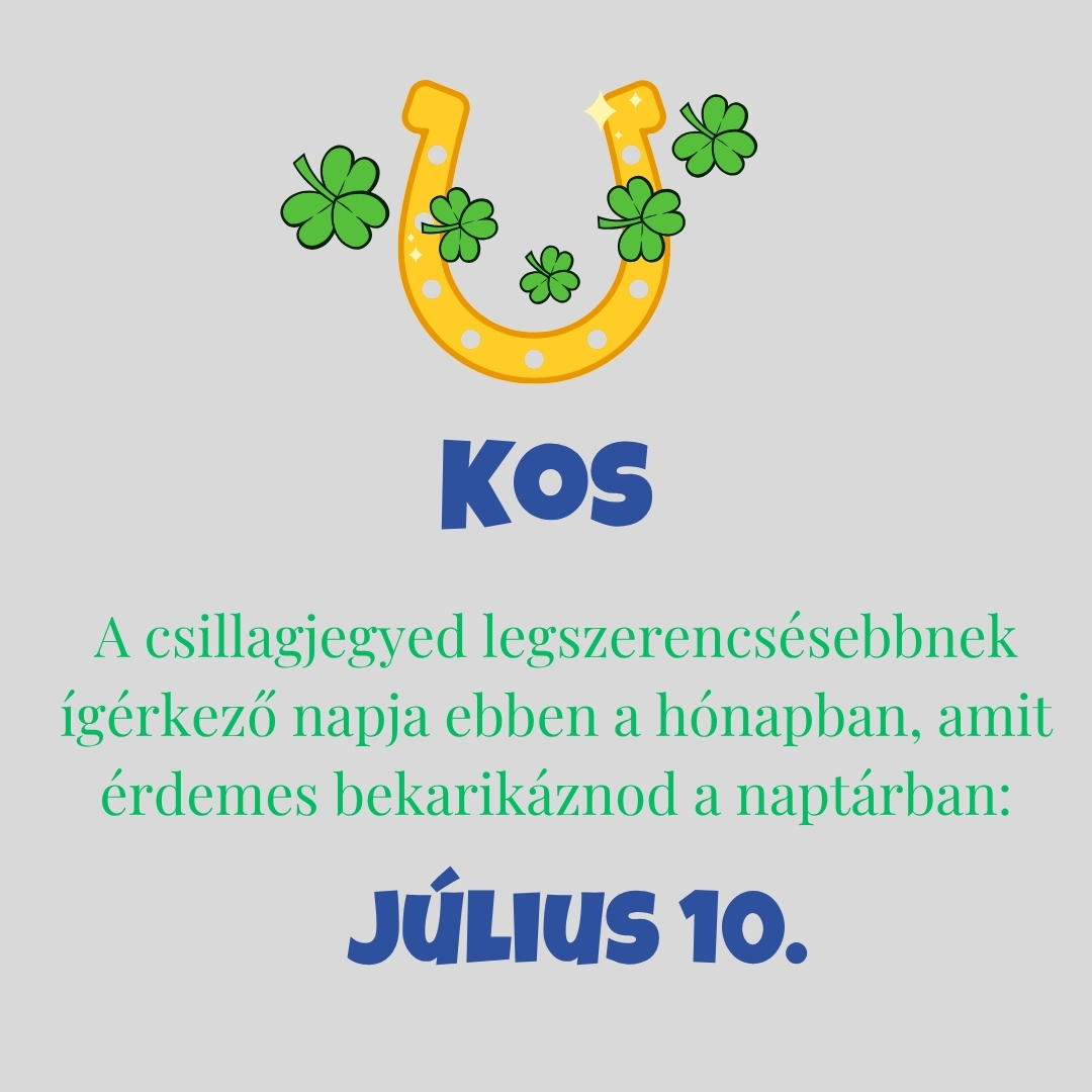 - A Neptunusz, az illúziók és az álmodozás bolygója, július 4-én hátráló mozgásba kezd a Kos jegyében, segítve téged abban, hogy felismerd, mi a valóság. Használd ki az ekkor áramló energiát arra, hogy szembenézz az igazsággal, és felhagyj a tévútra terelő dolgokkal — főleg azután, hogy a sorsfordító Szaturnusz bolygó július 13-án szintén hátráló mozgásra vált a Kosban.