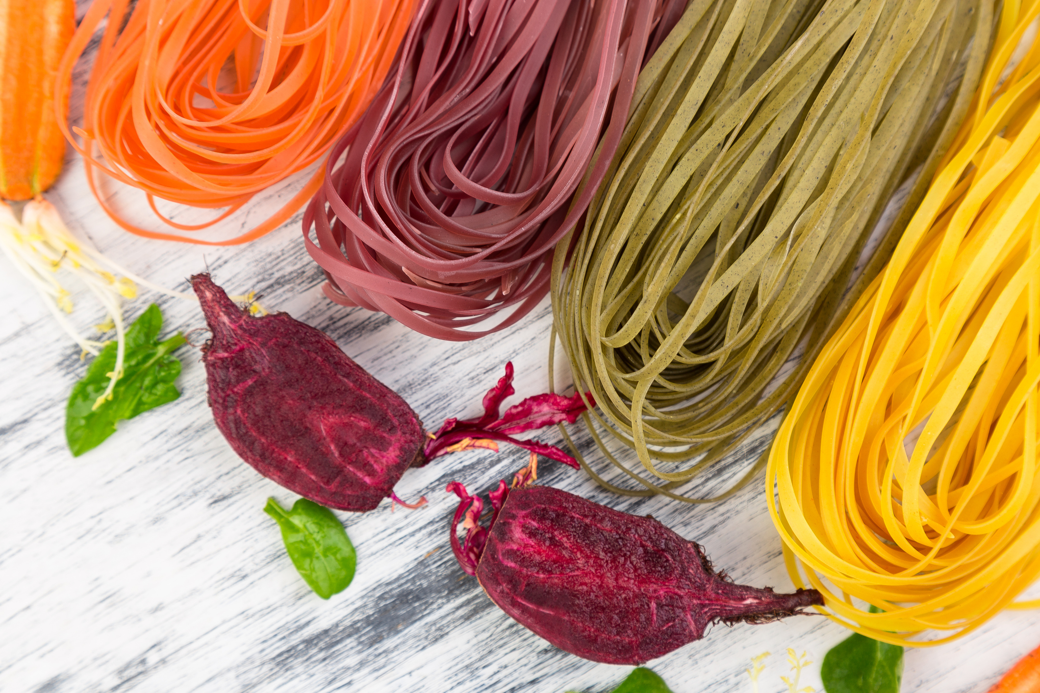 Színes tészta - A tésztaételek általában jokerek a kicsiknél. Válassz belőle színes változatot és kombináld olyan szószokkal és zöldségekkel, amiket szeret a gyermeked. Arra figyelj, hogy a tészta kizárólag természetes alapanyagokkal (cékla, répa) legyen színezve. (Fotó: GettyImages)