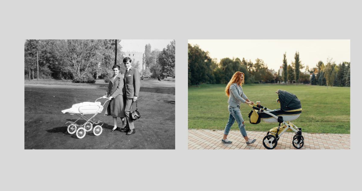 A babakocsi sokat változott, de a büszkeség, ahogyan a szülők tolják, egy cseppet sem.