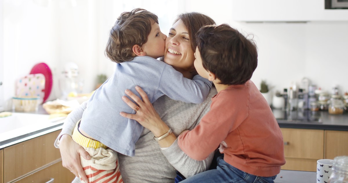 anyát kisfiiai ölelik