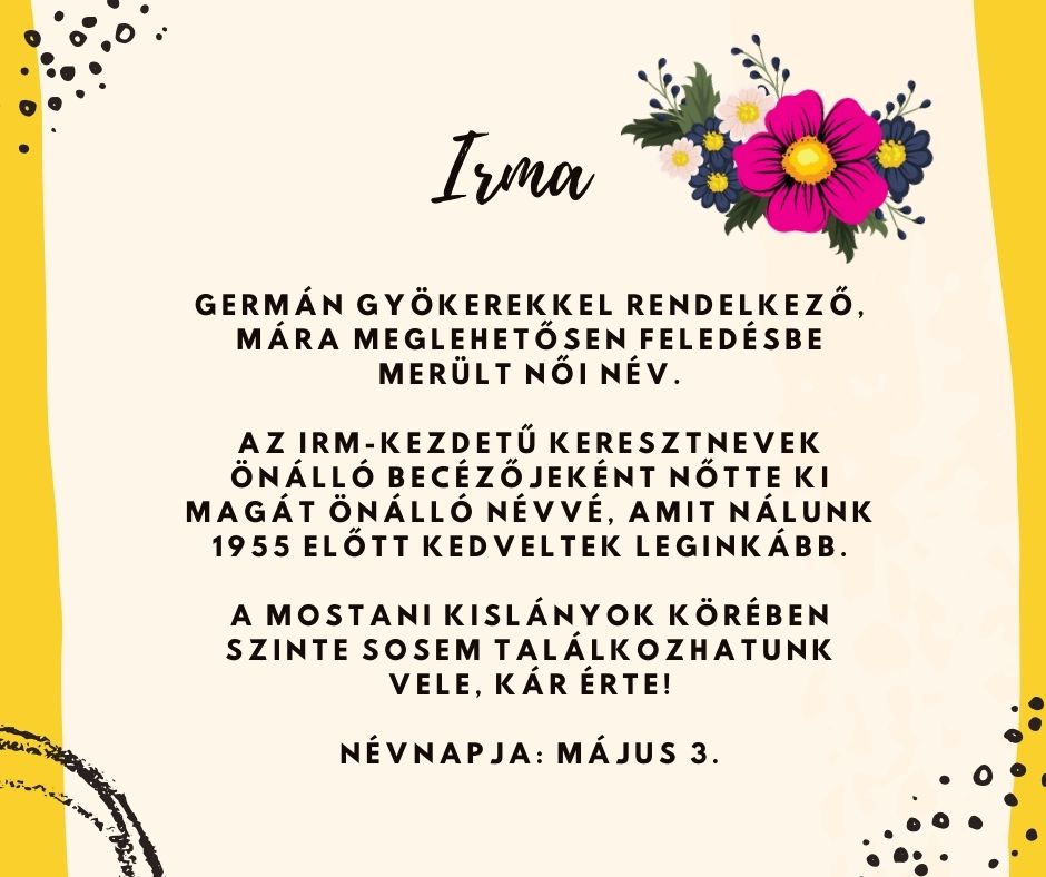 A sorban a 9. egy olyan női név, ami a mai gyerekek körében ritkább, mint a fehér holló. Nem túlzás azt állítani, hogy szinte kizárólag nagymama korúak viselik, pedig megérdemelné, hogy újra divatba jöjjön!