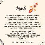A heti névnaposok között emellett több olyan név is akad, ami mára kikopott a Top100-ból, de találhatsz olyat is, amelyik egyszer sem szerepelt még a legfelkapottabb nevek listájában.