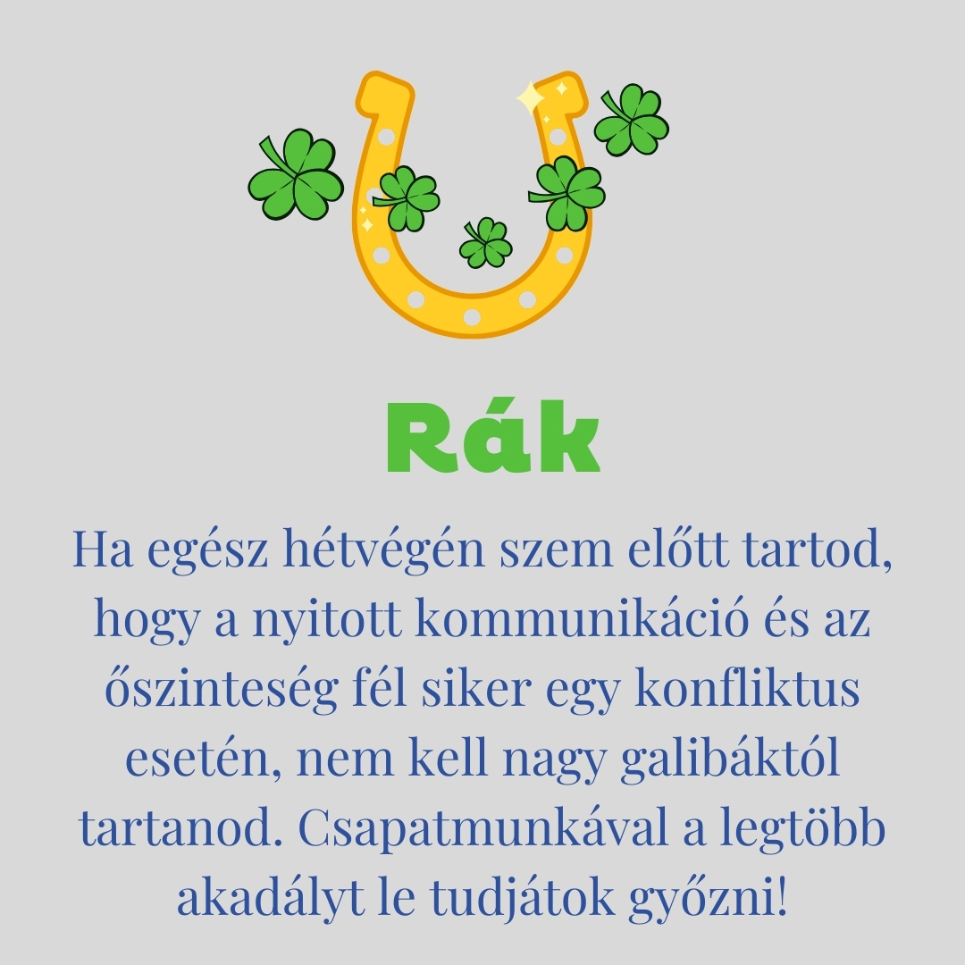 Ezen a hétvégén a Hold a Rák jegyében vendégeskedik, a Nap, a Neptunusz és a Szaturnusz pedig a Halak jegyben állomásozik. A Kos a Merkúrnak és a Vénusznak ad otthont, miközben a Mars a Rákban, az Uránusz a Bikában, a Plútó pedig a Vízöntőben jár. Mutatjuk, mindez hogy hat rád az elkövetkező napokban!