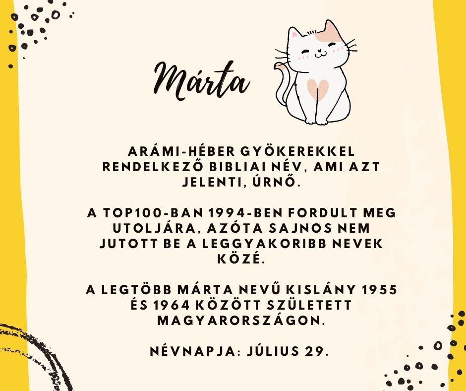 A heti névnaposok között emellett több olyan név is akad, ami mára kikopott a Top100-ból, de találhatsz olyat is, amelyik egyszer sem szerepelt még a legfelkapottabb nevek listájában.