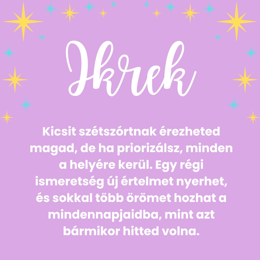 - Péntek – A kreatív és társasági energiák felerősödnek, találkozókra, kikapcsolódásra ideális időszak.